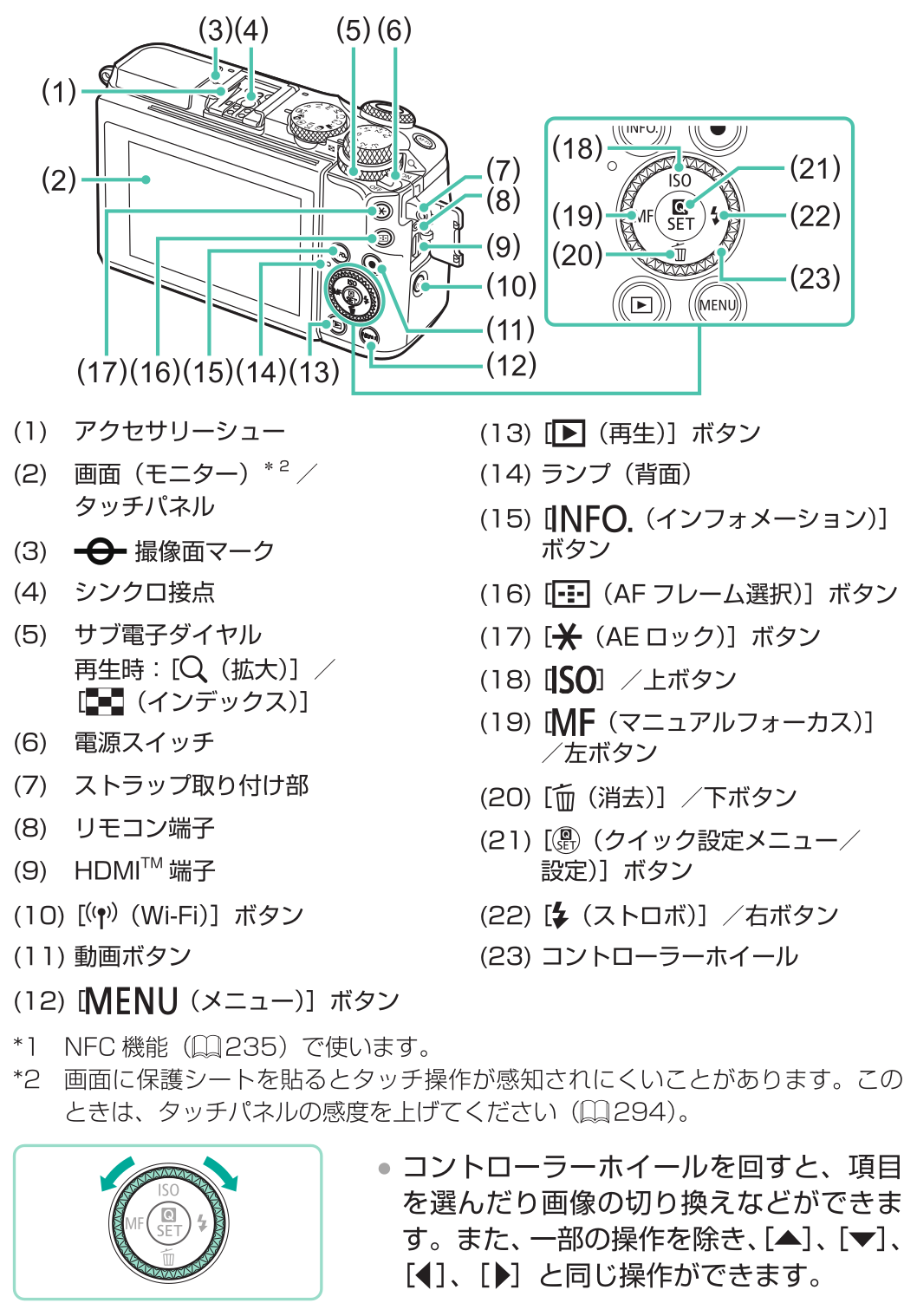 - メイン電子ダイヤル(シャッターボタンの外側にあるダイヤル)