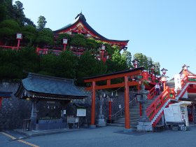津和野城跡のロープウェイを降りて少し行ったところに太皷谷稲成神社がある。1773年に津和野藩7代藩主亀井矩貞によって創建された郷社で、中国地方有数、日本五大稲荷と言われている。割にゆったりした敷地に色鮮やかで立派な社殿が並んでいた。