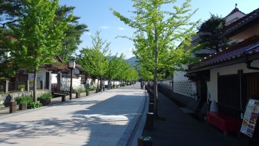 武家屋敷は、石を新しく敷き詰めて整備した「殿町通り」の両側に並んでいる。普通、武家屋敷の通りというともう少し細い道が浮かぶが、ここの通りは広々している。