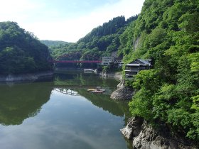 8:00小さなトンネルを抜けたところが帝釈峡だった。帝釈峡は石灰岩台地が帝釈川によって侵食されてできた18㎞続く峡谷(カルスト地形)。到着したのは、たぶん一番の見所になるであろう神竜湖付近だった。だが、未舗装の小さな駐車場、手入れされていない歴史民俗資料館、古くなった商店とその老主人を見ると、まるで取り残された場所のようだ。