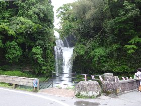 奥に落差20mの滝があり、下の滝と合わせて30mの落差がある。橋の脇から滝の方に下る遊歩道がついていて近くに寄って見ることができる。下の滝では遊歩道が滝の裏を抜け、歩いて通り抜けることができる。