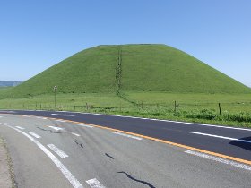 お椀を伏せたような形をした山だが、これも立派な火山。なだらかな所にポツンとあるのがおもしろい風景になっている。しぶき状に吹きあがったマグマがきれいに落ちて積み上がったもので、高さ80m、山頂は火口で大きくくぼんでいる。