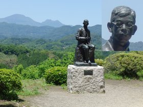 東京で生まれるが、内務省の役人であった父について各地を転校する。尋常小学校校(現中学校)をここで卒業し、その後東京に戻って音楽の道に進む。荒城の月は1901年に旧制中学校唱歌の応募作品として作曲したもので、日本で最初に作曲された西洋音楽として注目された。その後ヨーロッパに留学するが結核を患い、帰国して父の故郷大分で療養するが1年を待たずして死去。像の背後に見えるのは九重連山。