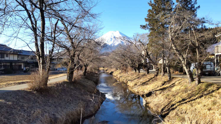 忍野八海のすぐ近くにある。桜の季節になるとここから眺める桜の花と富士山がとても美しいそうだ。