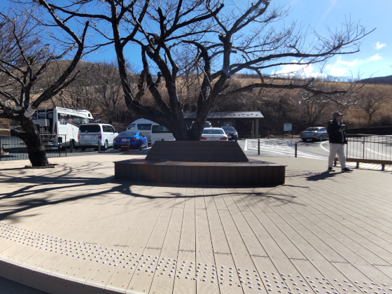 忍野村の比較的高い所にあって眺望が良く、人気スポットである。展望台として整備も進められ、前面には手摺が張られ、50mにわたってウッドデッキが設けられている。