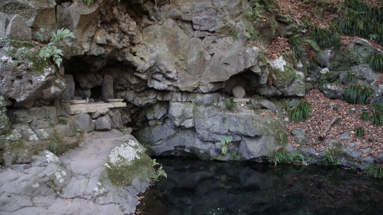 滝の上の窪地に湧き出している清水