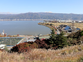 9:45高速の出口である諏訪I.Cに近づくと、下の方に諏訪湖の湖面ががちらちら見えてきた。もうすぐ湖を通り過ぎようという辺りに諏訪湖サービスエリアがある。