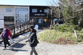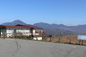 富士見台から4kmほどでなだらかに広がった丘の上に造られた大きな駐車場に行き着く。100m四方はあるかと思われる。駐車場の奥を縁取るように売店がいくつか並んでいる。木曜日であるから駐車場にはだいぶ空きがある。乗用車より2輪のほうが多い。若者たちのツーリングのグループがひと休みしているのだろう。時々、大きな声が聞こえ、活気を感じる。