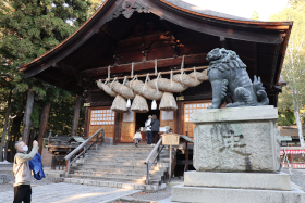 官幣大社。信濃国一宮にして全国25,000社ある諏訪神社の総本社。諏訪湖をはさみ、北に下社の秋宮と春宮、南東に上社の本宮と前宮の二社四宮が鎮座する。創建は古く、日本で最も古い神社の一つとも言われる。主祭神は両社とも建御名方神、八坂刀売神の二神をお祀りしている。