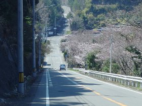 海沿いの国道から分かれて室戸スカイラインに入る。スカイラインは道幅も広く、まだ新しく走りやすいが、急な山の斜面のつづら折れの道を一気に150mほど上ることになるので、歩き遍路にとっては大変だ。