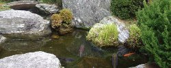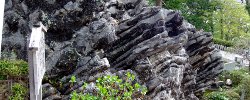 庭がよく手入れされている。上の本堂に続く斜面には石が積み上げられたように配置され、間に植木が植えられ、素晴らしい景観になっている。
