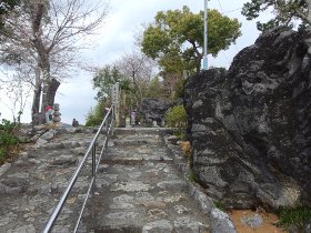 駐車場に車を停め、左の石段を行く。400mほど、かなりきつい坂道だ。