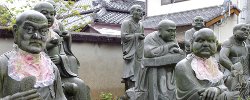 仁王門から本堂に向う石畳は、観音様が並んでお迎え。