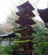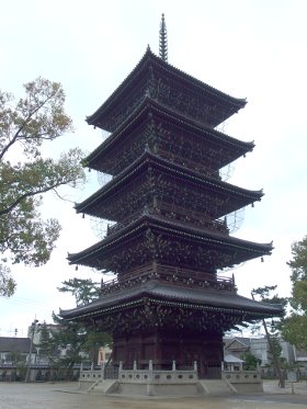 この五重塔を観ているとなぜだか違和感を感じる。その理由は、普通、上にいくにつれて屋根が小さくなるものだが、この塔はその割合が小さいからだと思われる。