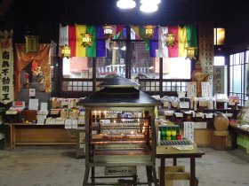 御本尊の薬師如来像は、胎内に開祖道隆作の薬師如来が入る二体薬師像で、眼病平癒のご利益があるという。