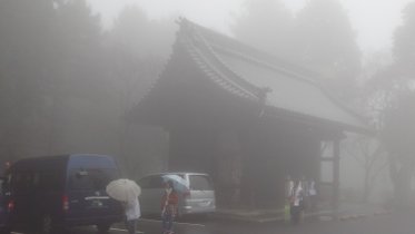 根香寺へ向かって走っていくとだんだん霧が深くなり、しまいには視界が50mもきかない程真っ白になってしまった。